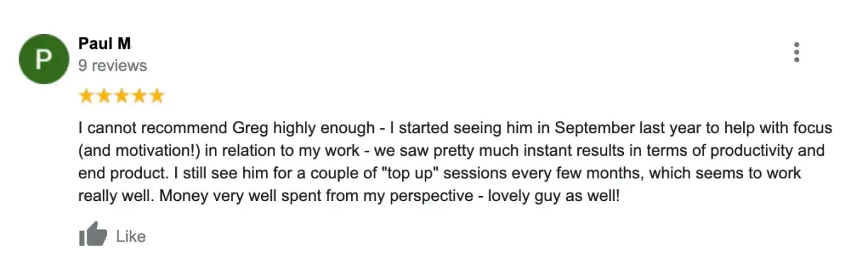 After several weeks I now feel like a different person, able to view life in perspective, to cope with issues at work and, most importantly, to be able to have free time away from work which really is away from work. I also no longer wake in the early hours of the morning feeling anxious."