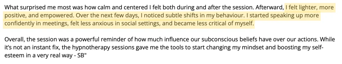 "It's the best feeling ever...life changing and phenomenal...I feel fixed now...I can do absolutely anything I set my mind to " - J.A ⭐⭐⭐⭐⭐
